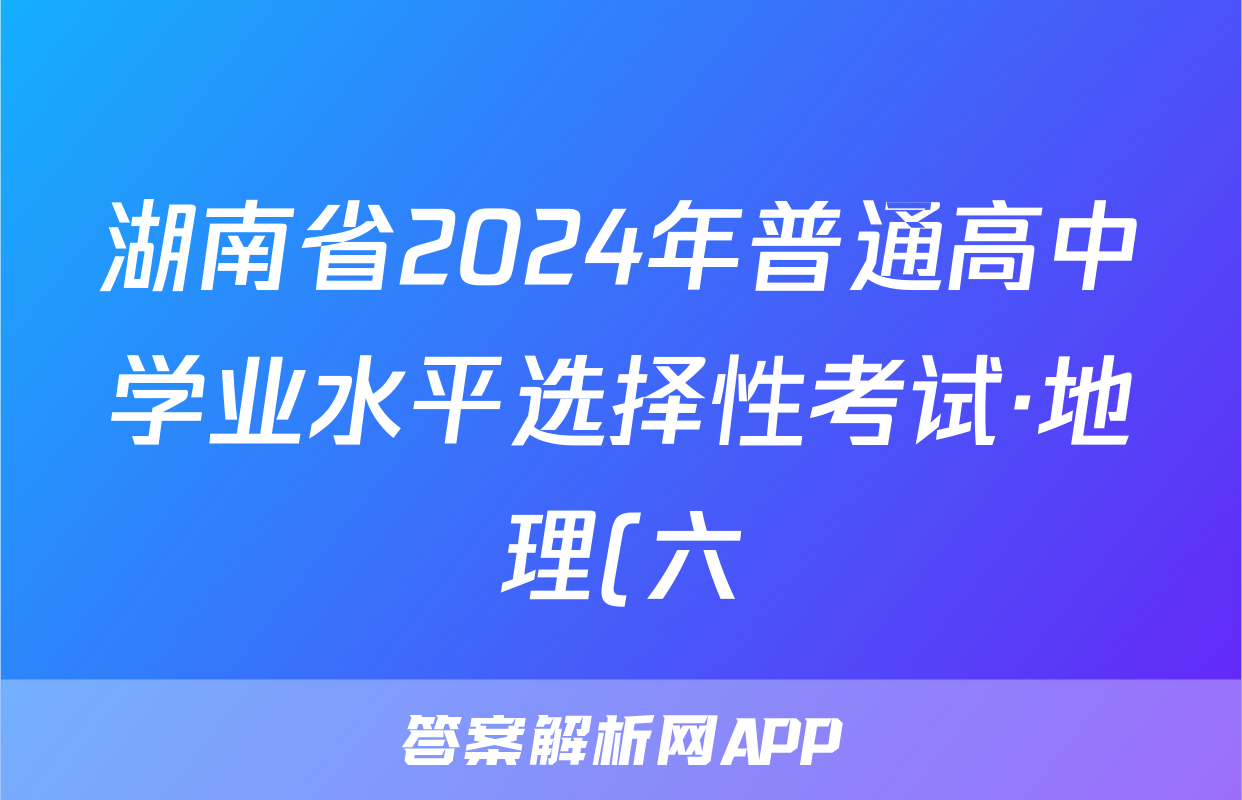 湖南省2024年普通高中学业水平选择性考试·地理(六)6[24·(新高考)ZX·MNJ·地理·HUN]试题,目前2025-2026衡水金卷答案网已经汇总了湖南省2024年普通高中学业水平选择性考试·地理(六)6[24·(新高考)ZX·MNJ·地理·HUN]试题的各科答案和试卷,获取更多{{papers_name}}答案解析,请在关注本站。