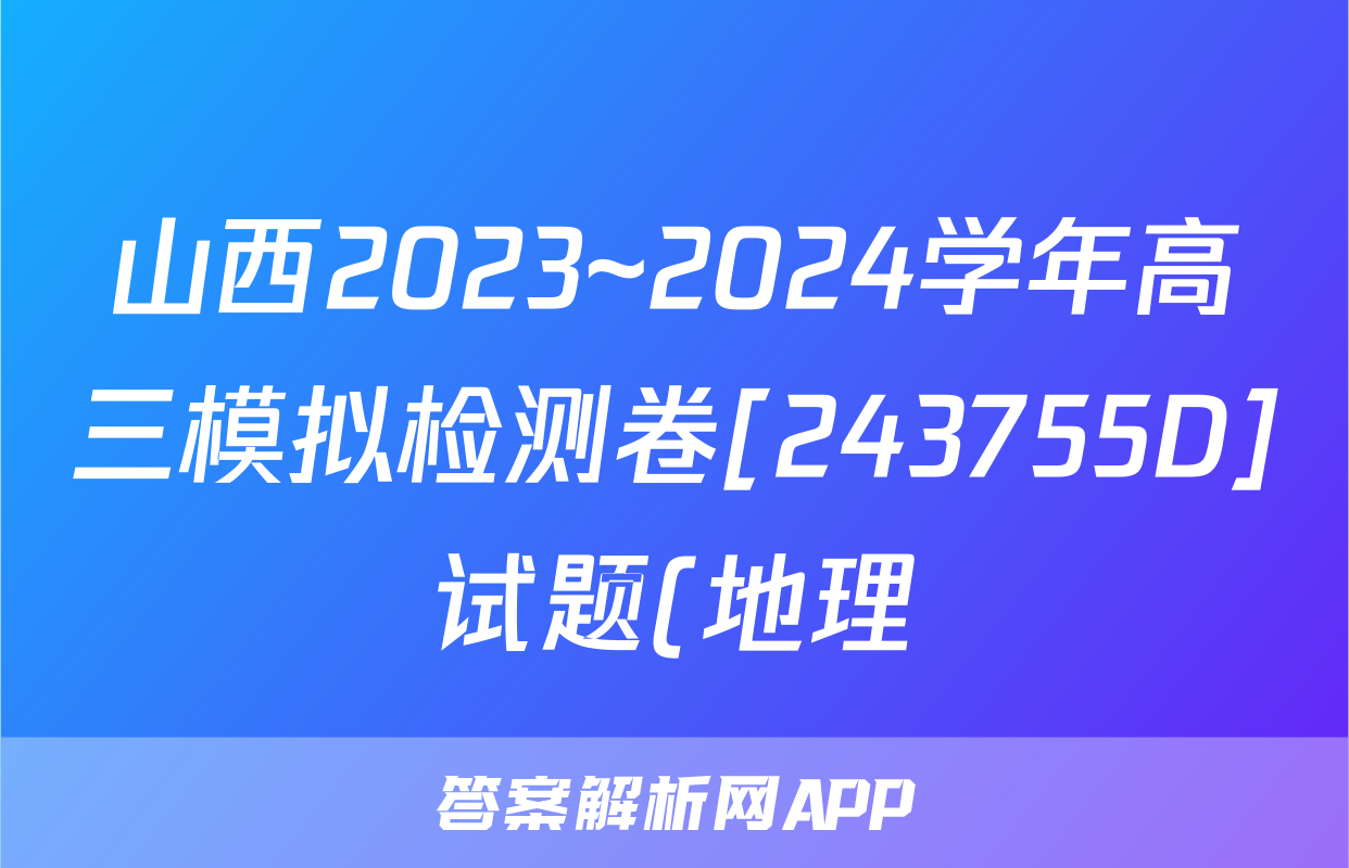山西2023~2024学年高三模拟检测卷[243755D]试题(地理),目前2025-2026衡水金卷答案网已经汇总了山西2023~2024学年高三模拟检测卷[243755D]试题(地理)的各科答案和试卷,获取更多{{papers_name}}答案解析,请在关注本站。