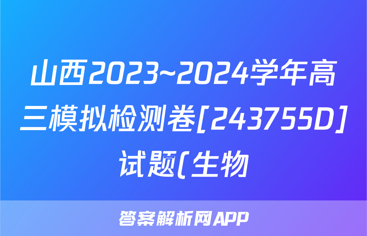 山西2023~2024学年高三模拟检测卷[243755D]试题(生物),目前2025-2026衡水金卷答案网已经汇总了山西2023~2024学年高三模拟检测卷[243755D]试题(生物)的各科答案和试卷,获取更多{{papers_name}}答案解析,请在关注本站。
