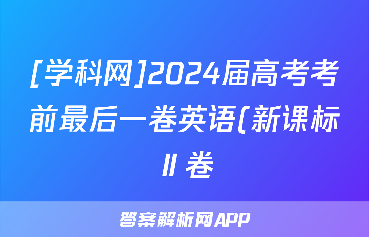 [学科网]2024届高考考前最后一卷英语(新课标Ⅱ卷)试题,目前2025-2026衡水金卷答案网已经汇总了[学科网]2024届高考考前最后一卷英语(新课标Ⅱ卷)试题的各科答案和试卷,获取更多{{papers_name}}答案解析,请在关注本站。