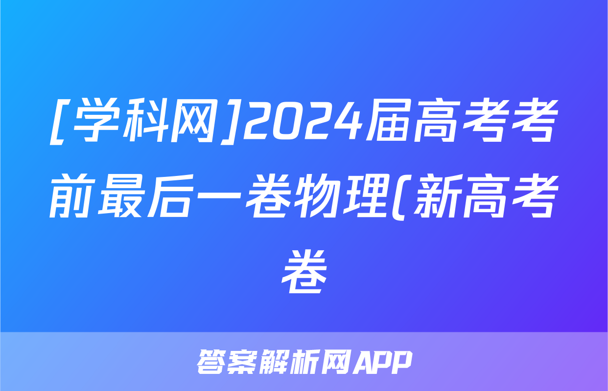 [学科网]2024届高考考前最后一卷物理(新高考卷)(新教材)试题,目前2025-2026衡水金卷答案网已经汇总了[学科网]2024届高考考前最后一卷物理(新高考卷)(新教材)试题的各科答案和试卷,获取更多{{papers_name}}答案解析,请在关注本站。