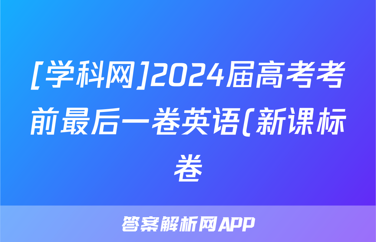 [学科网]2024届高考考前最后一卷英语(新课标卷)(新疆专用)答案,目前2025-2026衡水金卷答案网已经汇总了[学科网]2024届高考考前最后一卷英语(新课标卷)(新疆专用)答案的各科答案和试卷,获取更多{{papers_name}}答案解析,请在关注本站。