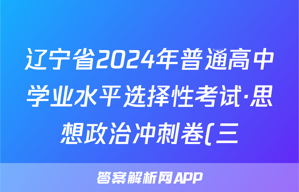 辽宁省2024年普通高中学业水平选择性考试·思想政治冲刺卷(三)3[24·(新高考)CCJ·思想政治·LN]答案,目前2025-2026衡水金卷答案网已经汇总了辽宁省2024年普通高中学业水平选择性考试·思想政治冲刺卷(三)3[24·(新高考)CCJ·思想政治·LN]答案的各科答案和试卷,获取更多{{papers_name}}答案解析,请在关注本站。