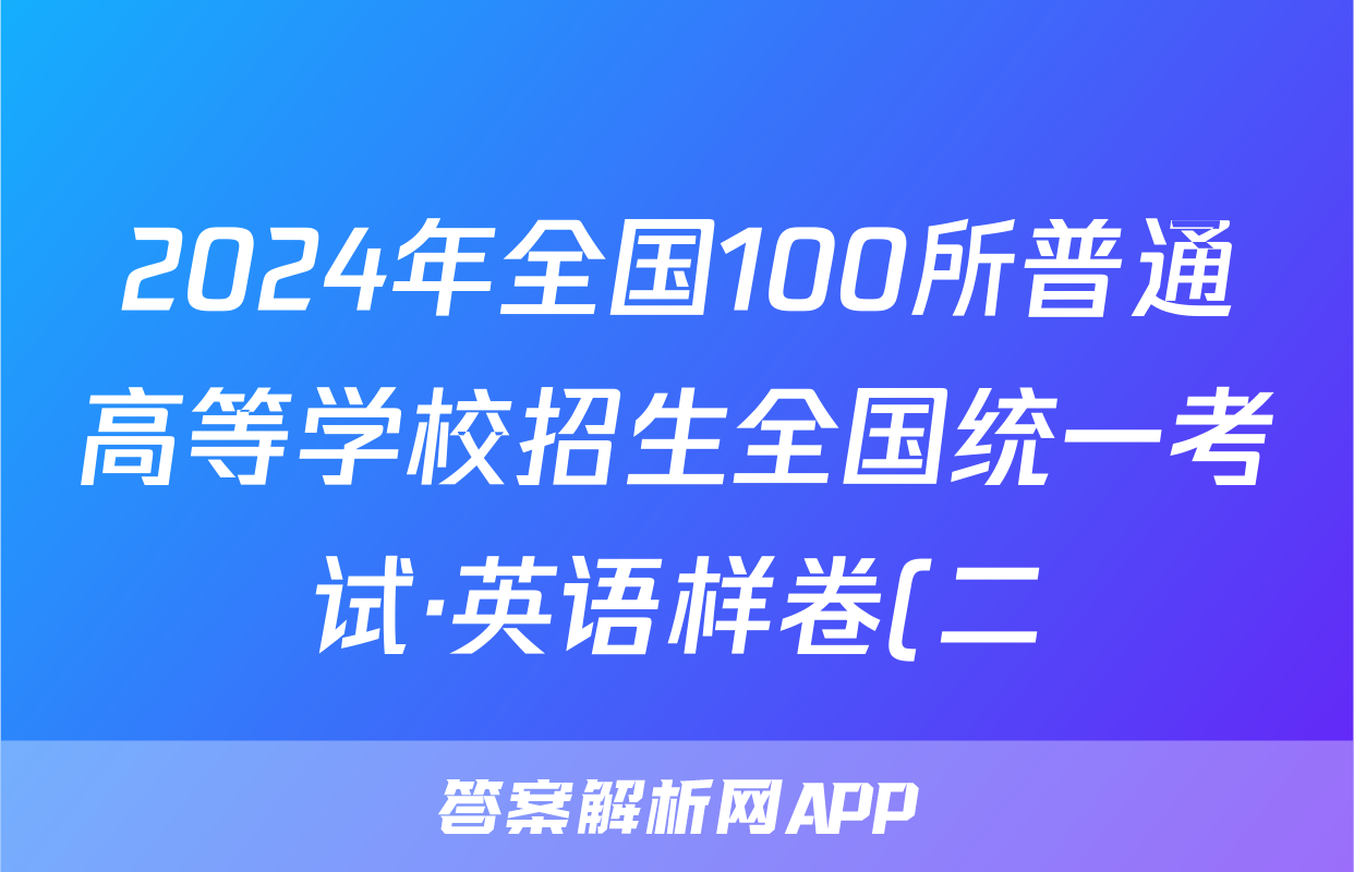 2024年全国100所普通高等学校招生全国统一考试·英语样卷(二)2[24·(新高考)高考样卷·英语·G DONG]答案,目前2025-2026衡水金卷答案网已经汇总了2024年全国100所普通高等学校招生全国统一考试·英语样卷(二)2[24·(新高考)高考样卷·英语·G DONG]答案的各科答案和试卷,获取更多{{papers_name}}答案解析,请在关注本站。