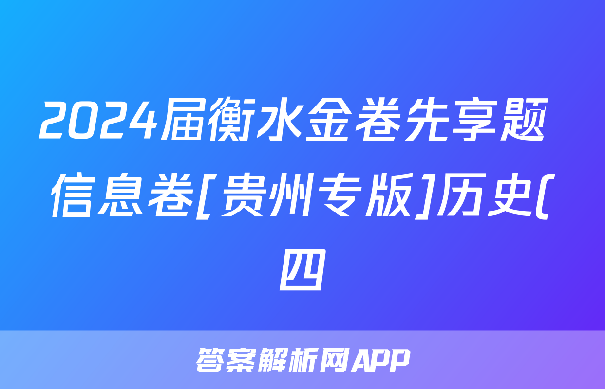 2024届衡水金卷先享题 信息卷[贵州专版]历史(四)4答案,目前2025-2026衡水金卷答案网已经汇总了2024届衡水金卷先享题 信息卷[贵州专版]历史(四)4答案的各科答案和试卷,获取更多{{papers_name}}答案解析,请在关注本站。
