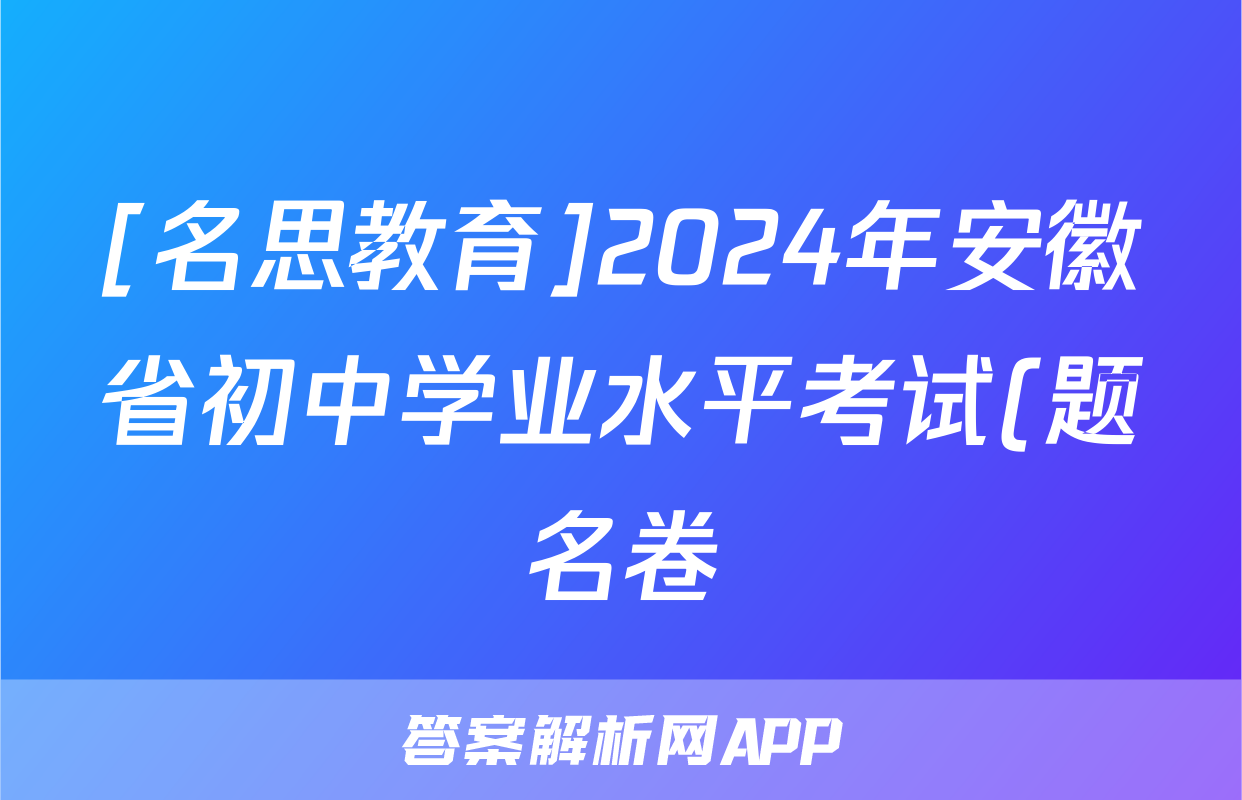 [名思教育]2024年安徽省初中学业水平考试(题名卷)答案(生物),目前2025-2026衡水金卷答案网已经汇总了[名思教育]2024年安徽省初中学业水平考试(题名卷)答案(生物)的各科答案和试卷,获取更多{{papers_name}}答案解析,请在关注本站。