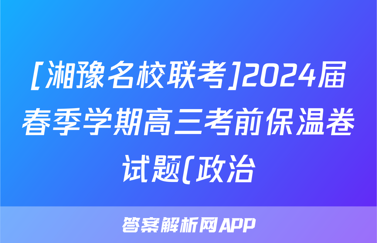 [湘豫名校联考]2024届春季学期高三考前保温卷试题(政治),目前2025-2026衡水金卷答案网已经汇总了[湘豫名校联考]2024届春季学期高三考前保温卷试题(政治)的各科答案和试卷,获取更多{{papers_name}}答案解析,请在关注本站。