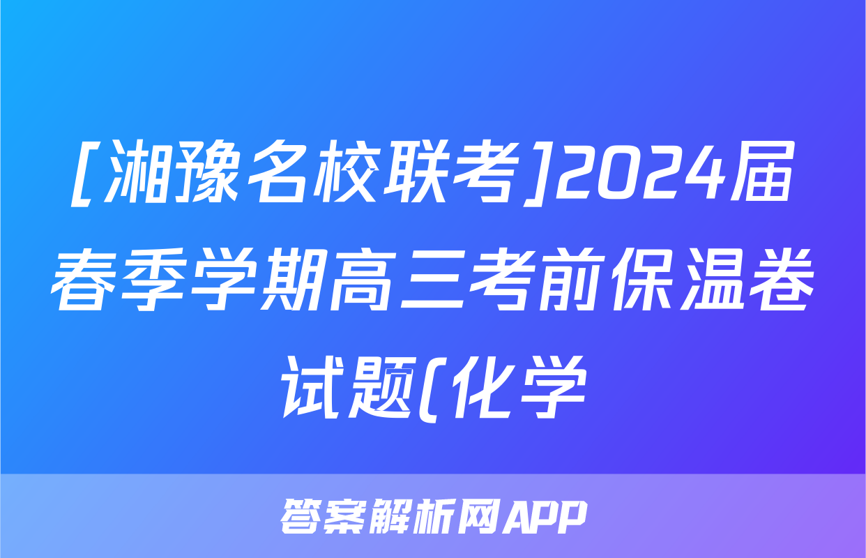 [湘豫名校联考]2024届春季学期高三考前保温卷试题(化学),目前2025-2026衡水金卷答案网已经汇总了[湘豫名校联考]2024届春季学期高三考前保温卷试题(化学)的各科答案和试卷,获取更多{{papers_name}}答案解析,请在关注本站。