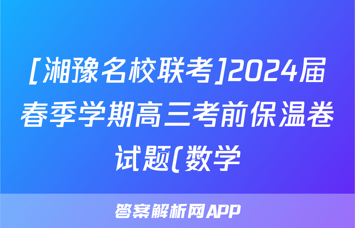 [湘豫名校联考]2024届春季学期高三考前保温卷试题(数学),目前2025-2026衡水金卷答案网已经汇总了[湘豫名校联考]2024届春季学期高三考前保温卷试题(数学)的各科答案和试卷,获取更多{{papers_name}}答案解析,请在关注本站。
