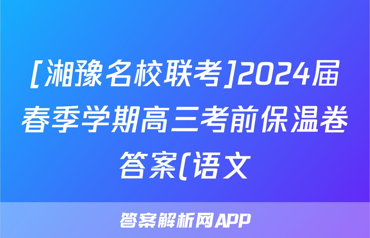[湘豫名校联考]2024届春季学期高三考前保温卷答案(语文),目前2025-2026衡水金卷答案网已经汇总了[湘豫名校联考]2024届春季学期高三考前保温卷答案(语文)的各科答案和试卷,获取更多{{papers_name}}答案解析,请在关注本站。