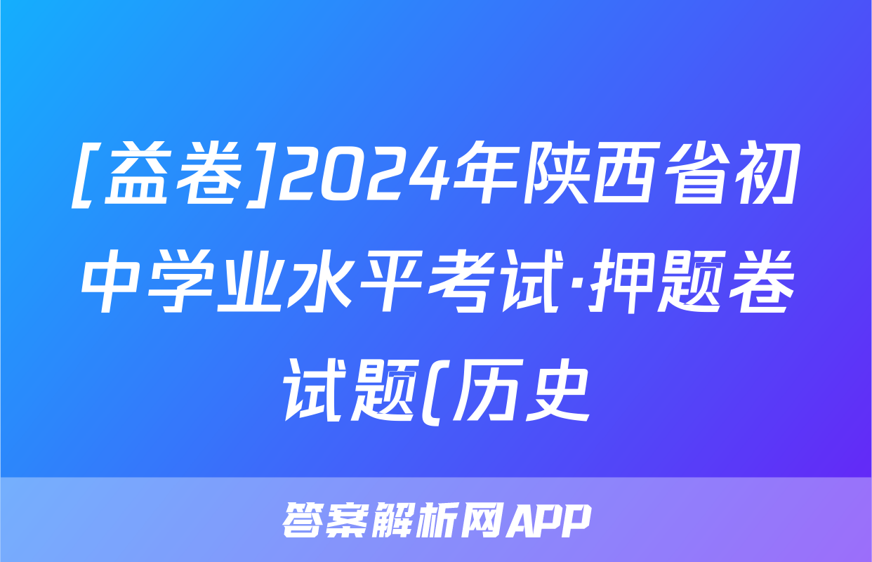 [益卷]2024年陕西省初中学业水平考试·押题卷试题(历史),目前2025-2026衡水金卷答案网已经汇总了[益卷]2024年陕西省初中学业水平考试·押题卷试题(历史)的各科答案和试卷,获取更多{{papers_name}}答案解析,请在关注本站。