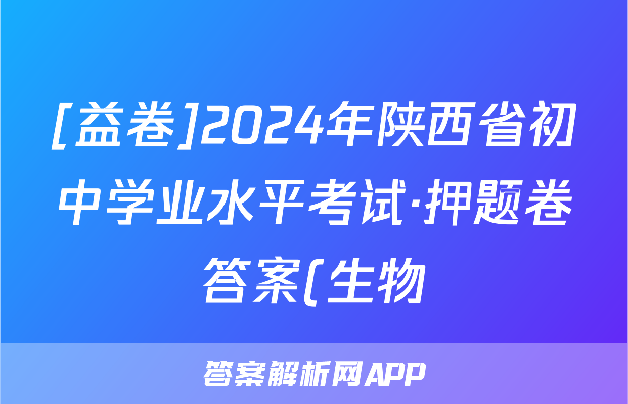 [益卷]2024年陕西省初中学业水平考试·押题卷答案(生物),目前2025-2026衡水金卷答案网已经汇总了[益卷]2024年陕西省初中学业水平考试·押题卷答案(生物)的各科答案和试卷,获取更多{{papers_name}}答案解析,请在关注本站。