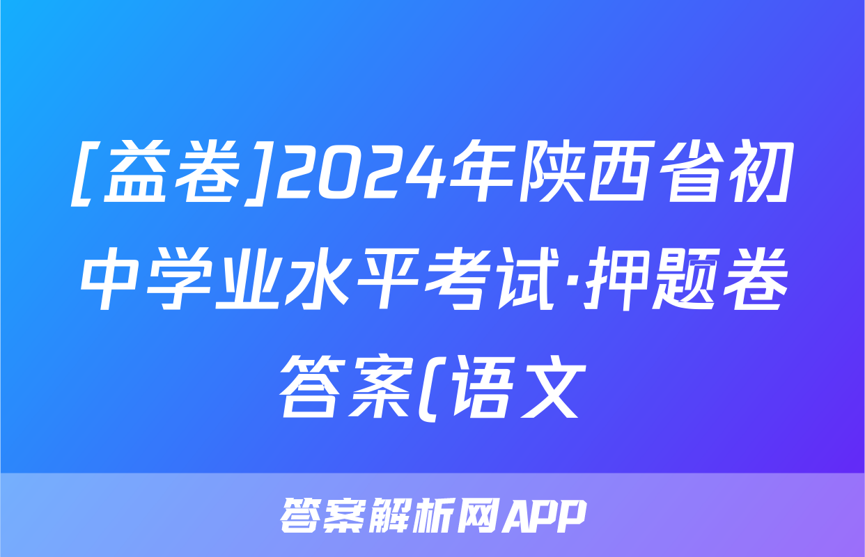 [益卷]2024年陕西省初中学业水平考试·押题卷答案(语文),目前2025-2026衡水金卷答案网已经汇总了[益卷]2024年陕西省初中学业水平考试·押题卷答案(语文)的各科答案和试卷,获取更多{{papers_name}}答案解析,请在关注本站。