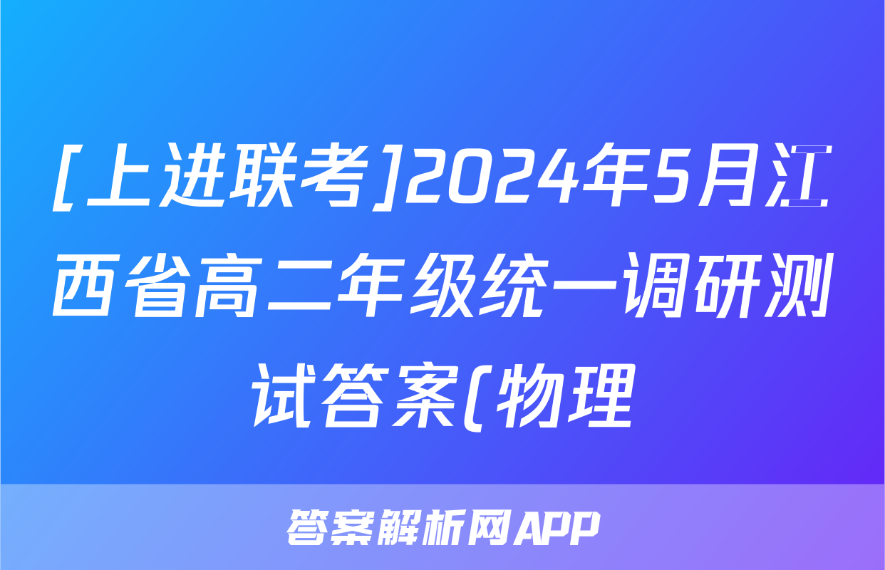 [上进联考]2024年5月江西省高二年级统一调研测试答案(物理),目前2025-2026衡水金卷答案网已经汇总了[上进联考]2024年5月江西省高二年级统一调研测试答案(物理)的各科答案和试卷,获取更多{{papers_name}}答案解析,请在关注本站。
