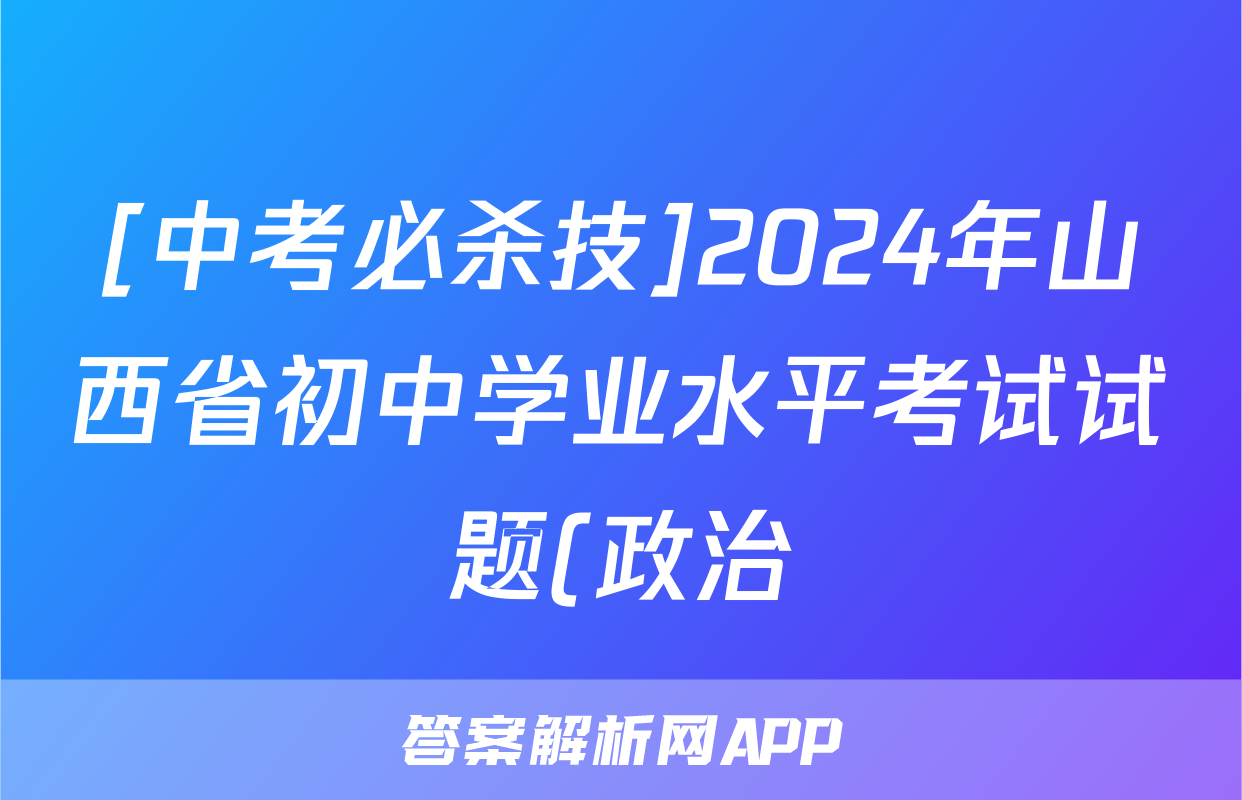 [中考必杀技]2024年山西省初中学业水平考试试题(政治),目前2025-2026衡水金卷答案网已经汇总了[中考必杀技]2024年山西省初中学业水平考试试题(政治)的各科答案和试卷,获取更多{{papers_name}}答案解析,请在关注本站。