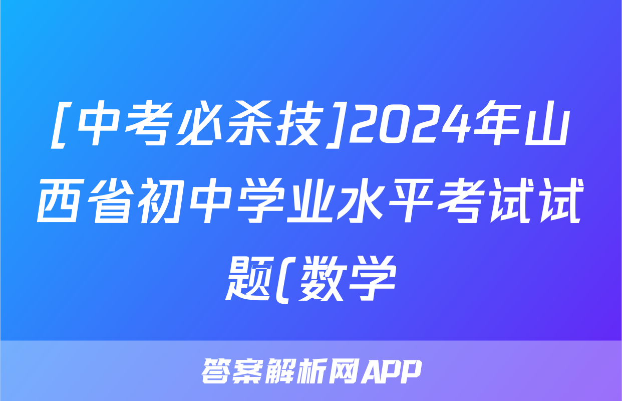 [中考必杀技]2024年山西省初中学业水平考试试题(数学),目前2025-2026衡水金卷答案网已经汇总了[中考必杀技]2024年山西省初中学业水平考试试题(数学)的各科答案和试卷,获取更多{{papers_name}}答案解析,请在关注本站。