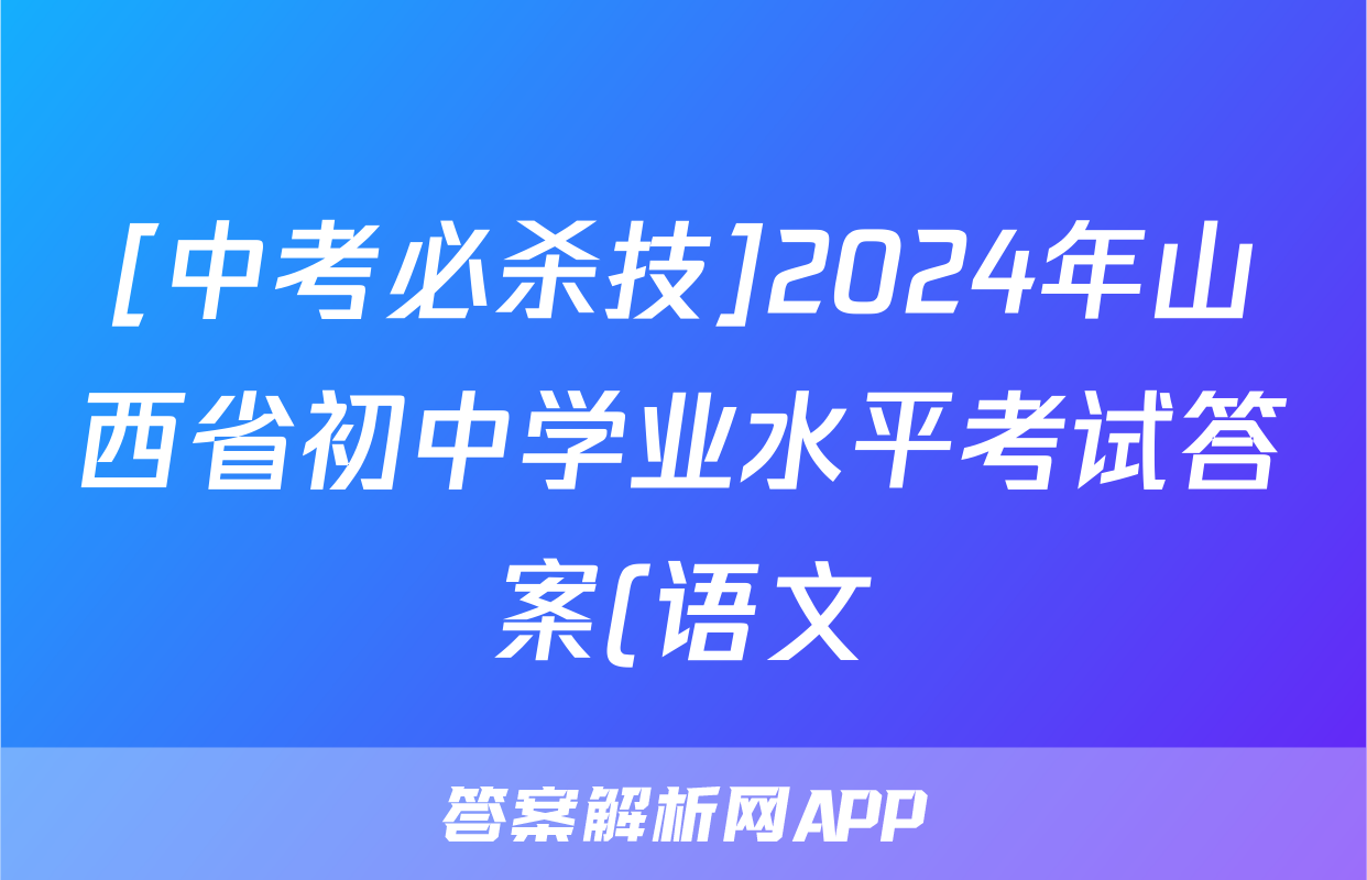 [中考必杀技]2024年山西省初中学业水平考试答案(语文),目前2025-2026衡水金卷答案网已经汇总了[中考必杀技]2024年山西省初中学业水平考试答案(语文)的各科答案和试卷,获取更多{{papers_name}}答案解析,请在关注本站。