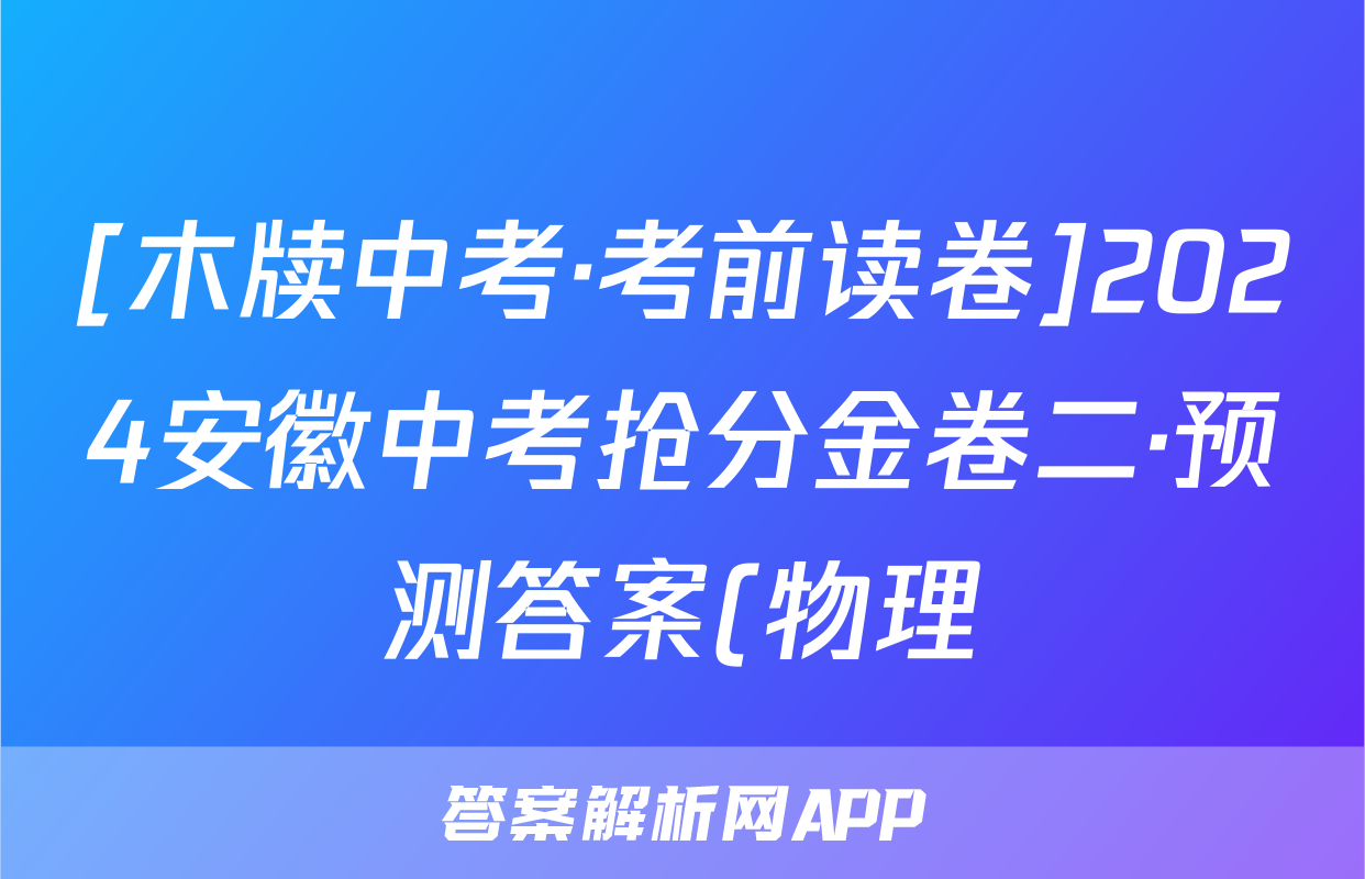 [木牍中考·考前读卷]2024安徽中考抢分金卷二·预测答案(物理),目前2025-2026衡水金卷答案网已经汇总了[木牍中考·考前读卷]2024安徽中考抢分金卷二·预测答案(物理)的各科答案和试卷,获取更多{{papers_name}}答案解析,请在关注本站。