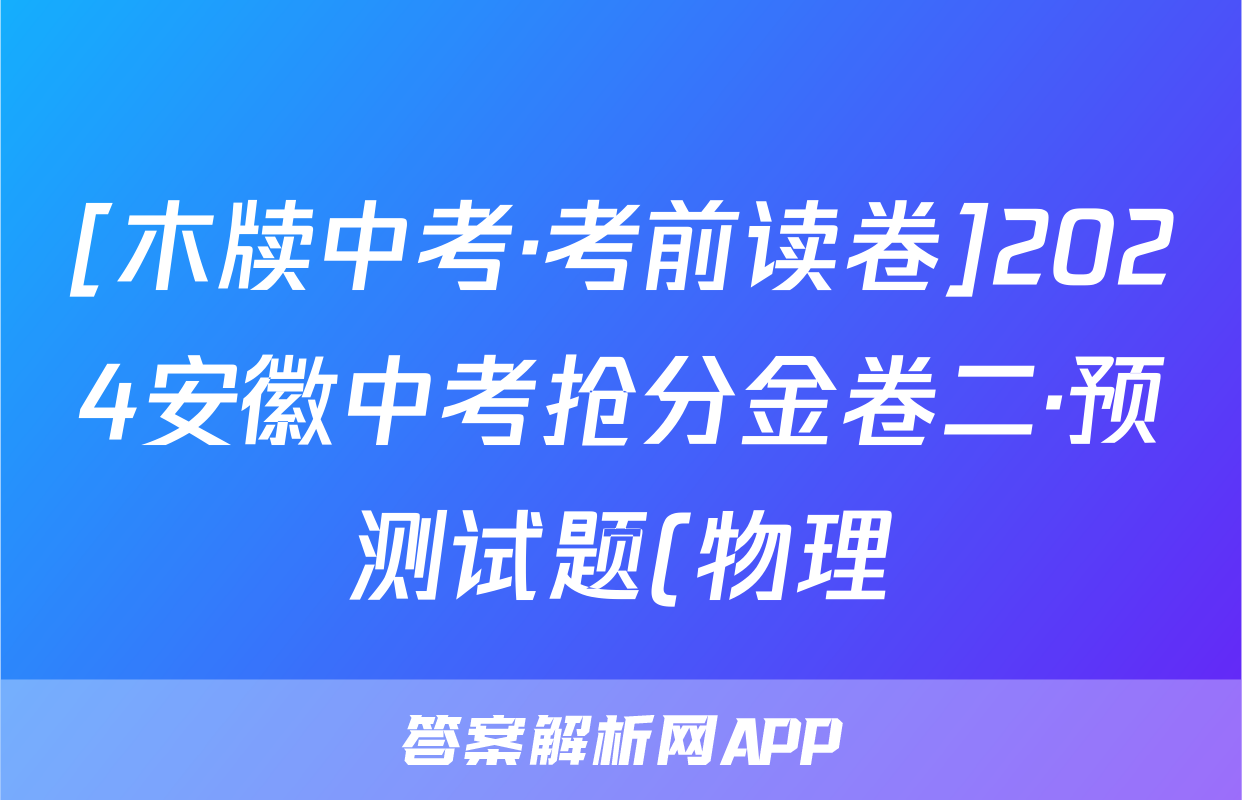 [木牍中考·考前读卷]2024安徽中考抢分金卷二·预测试题(物理),目前2025-2026衡水金卷答案网已经汇总了[木牍中考·考前读卷]2024安徽中考抢分金卷二·预测试题(物理)的各科答案和试卷,获取更多{{papers_name}}答案解析,请在关注本站。