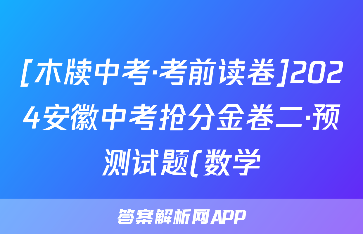 [木牍中考·考前读卷]2024安徽中考抢分金卷二·预测试题(数学),目前2025-2026衡水金卷答案网已经汇总了[木牍中考·考前读卷]2024安徽中考抢分金卷二·预测试题(数学)的各科答案和试卷,获取更多{{papers_name}}答案解析,请在关注本站。