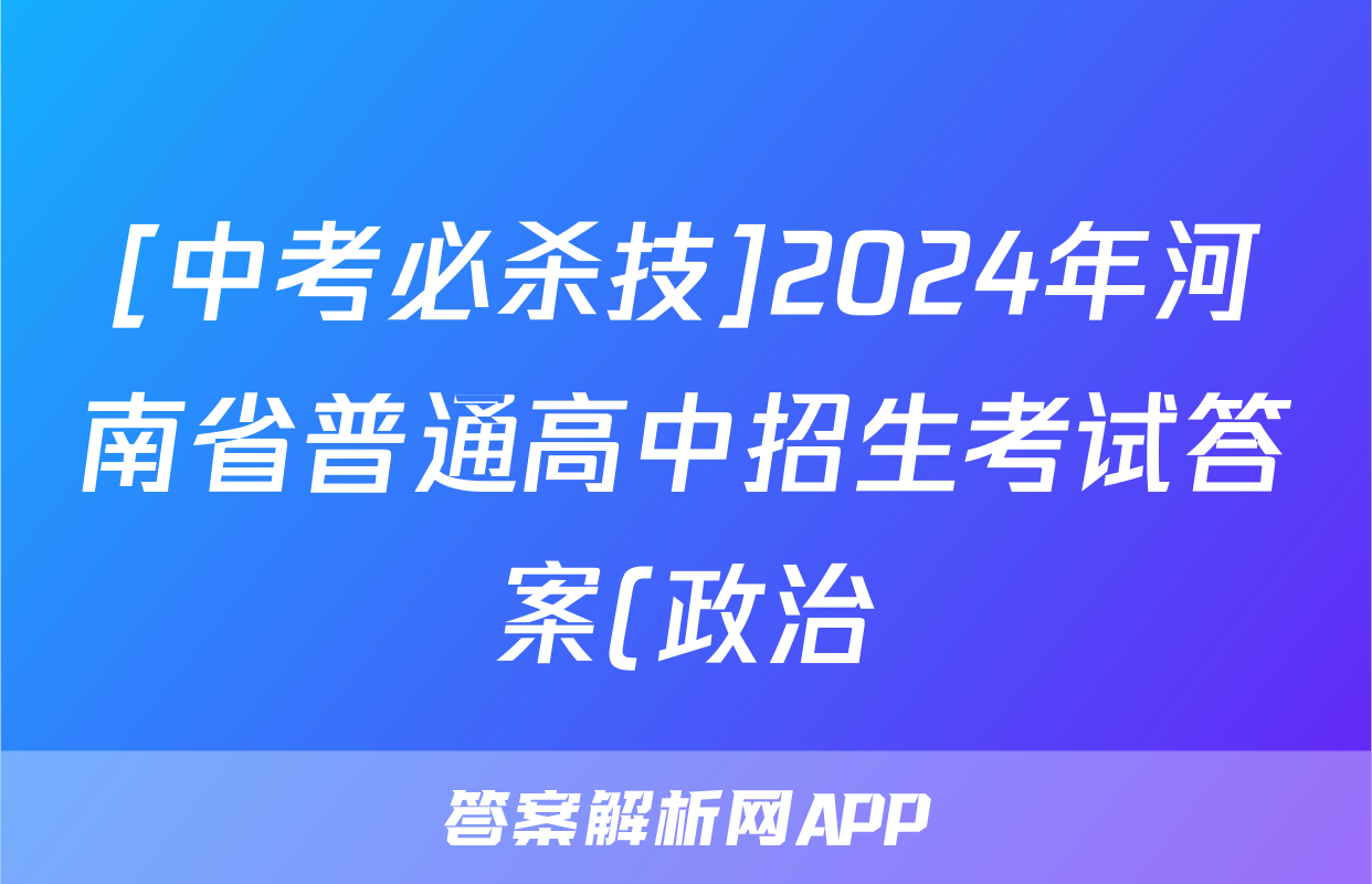 [中考必杀技]2024年河南省普通高中招生考试答案(政治),目前2025-2026衡水金卷答案网已经汇总了[中考必杀技]2024年河南省普通高中招生考试答案(政治)的各科答案和试卷,获取更多{{papers_name}}答案解析,请在关注本站。