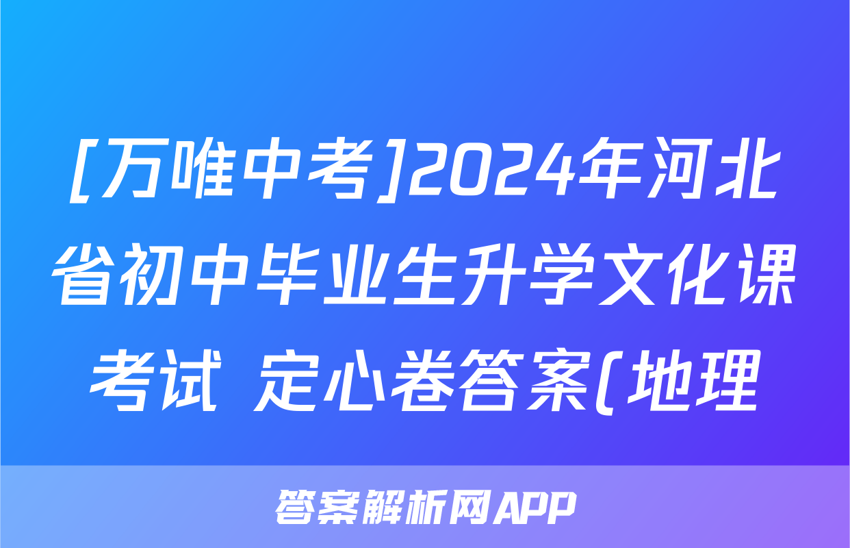[万唯中考]2024年河北省初中毕业生升学文化课考试 定心卷答案(地理),目前2025-2026衡水金卷答案网已经汇总了[万唯中考]2024年河北省初中毕业生升学文化课考试 定心卷答案(地理)的各科答案和试卷,获取更多{{papers_name}}答案解析,请在关注本站。