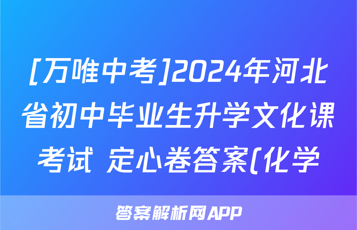 [万唯中考]2024年河北省初中毕业生升学文化课考试 定心卷答案(化学),目前2025-2026衡水金卷答案网已经汇总了[万唯中考]2024年河北省初中毕业生升学文化课考试 定心卷答案(化学)的各科答案和试卷,获取更多{{papers_name}}答案解析,请在关注本站。