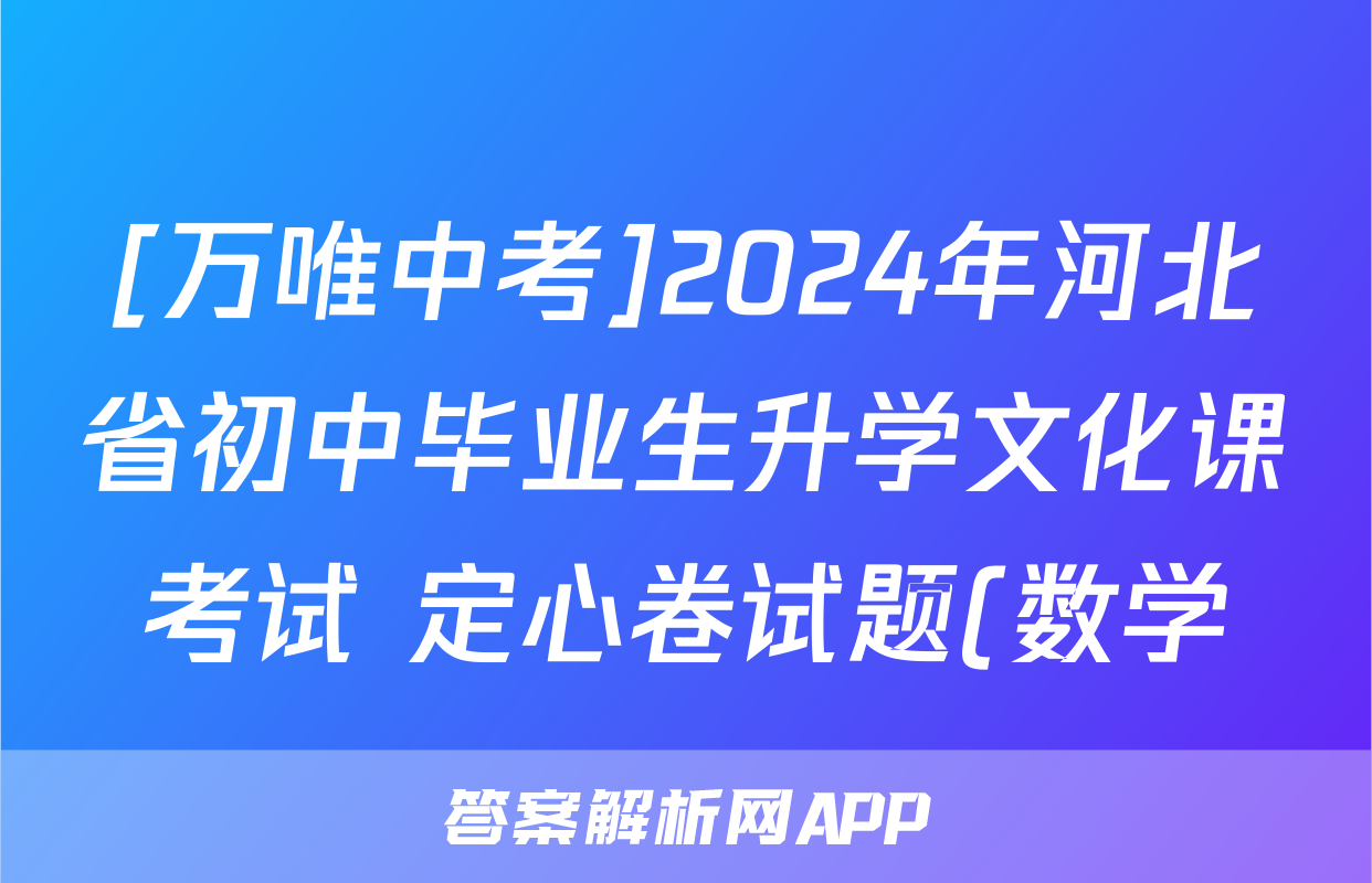 [万唯中考]2024年河北省初中毕业生升学文化课考试 定心卷试题(数学),目前2025-2026衡水金卷答案网已经汇总了[万唯中考]2024年河北省初中毕业生升学文化课考试 定心卷试题(数学)的各科答案和试卷,获取更多{{papers_name}}答案解析,请在关注本站。