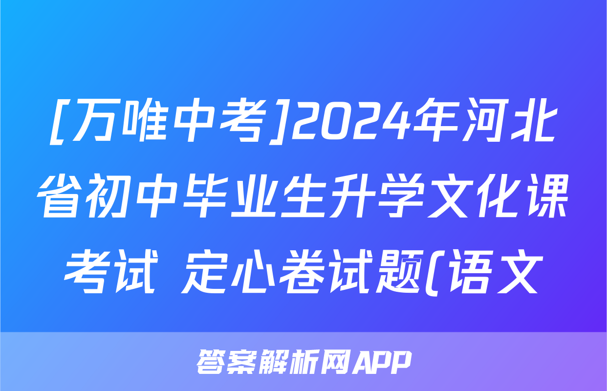 [万唯中考]2024年河北省初中毕业生升学文化课考试 定心卷试题(语文),目前2025-2026衡水金卷答案网已经汇总了[万唯中考]2024年河北省初中毕业生升学文化课考试 定心卷试题(语文)的各科答案和试卷,获取更多{{papers_name}}答案解析,请在关注本站。
