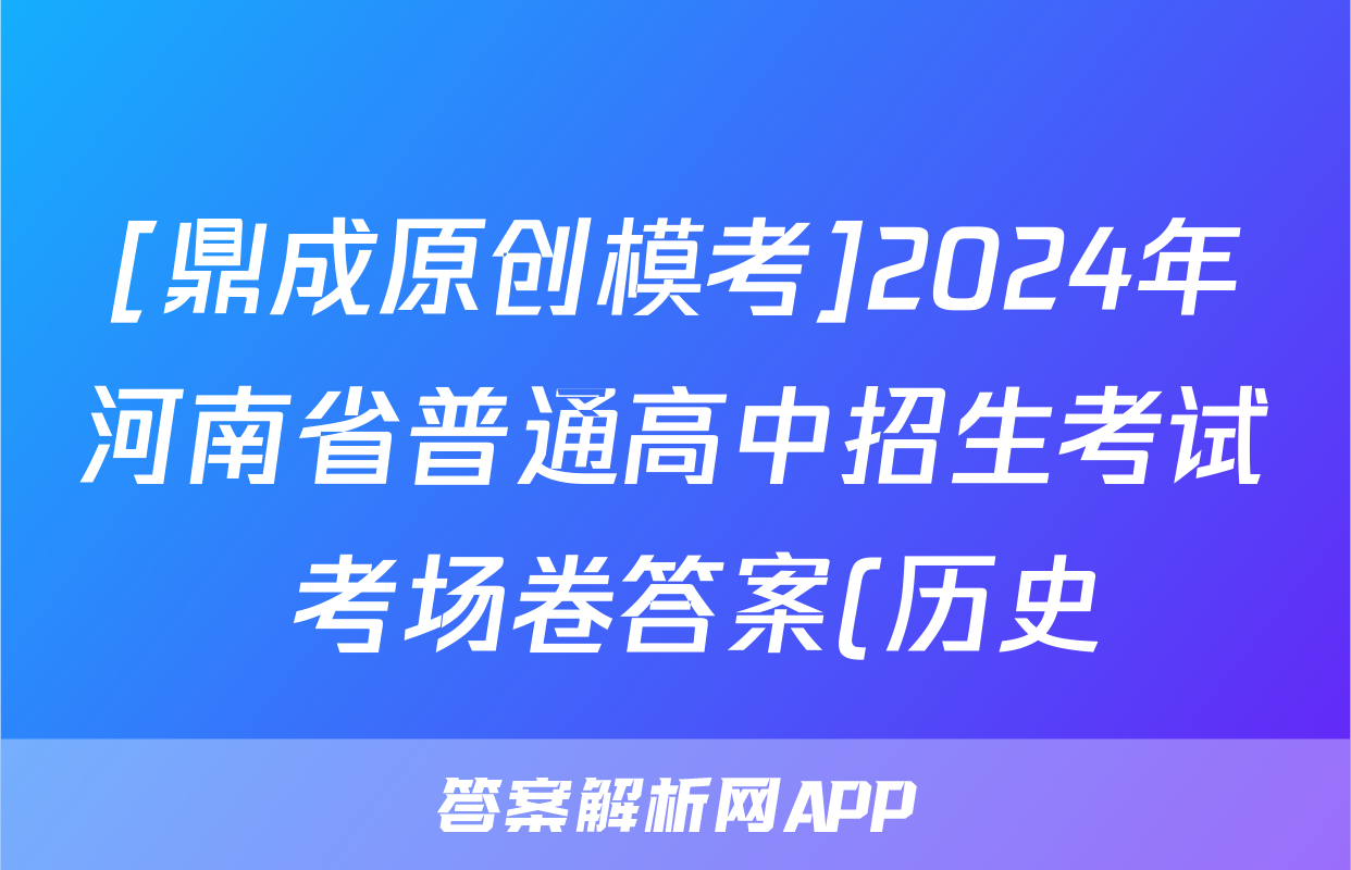 [鼎成原创模考]2024年河南省普通高中招生考试 考场卷答案(历史),目前2025-2026衡水金卷答案网已经汇总了[鼎成原创模考]2024年河南省普通高中招生考试 考场卷答案(历史)的各科答案和试卷,获取更多{{papers_name}}答案解析,请在关注本站。