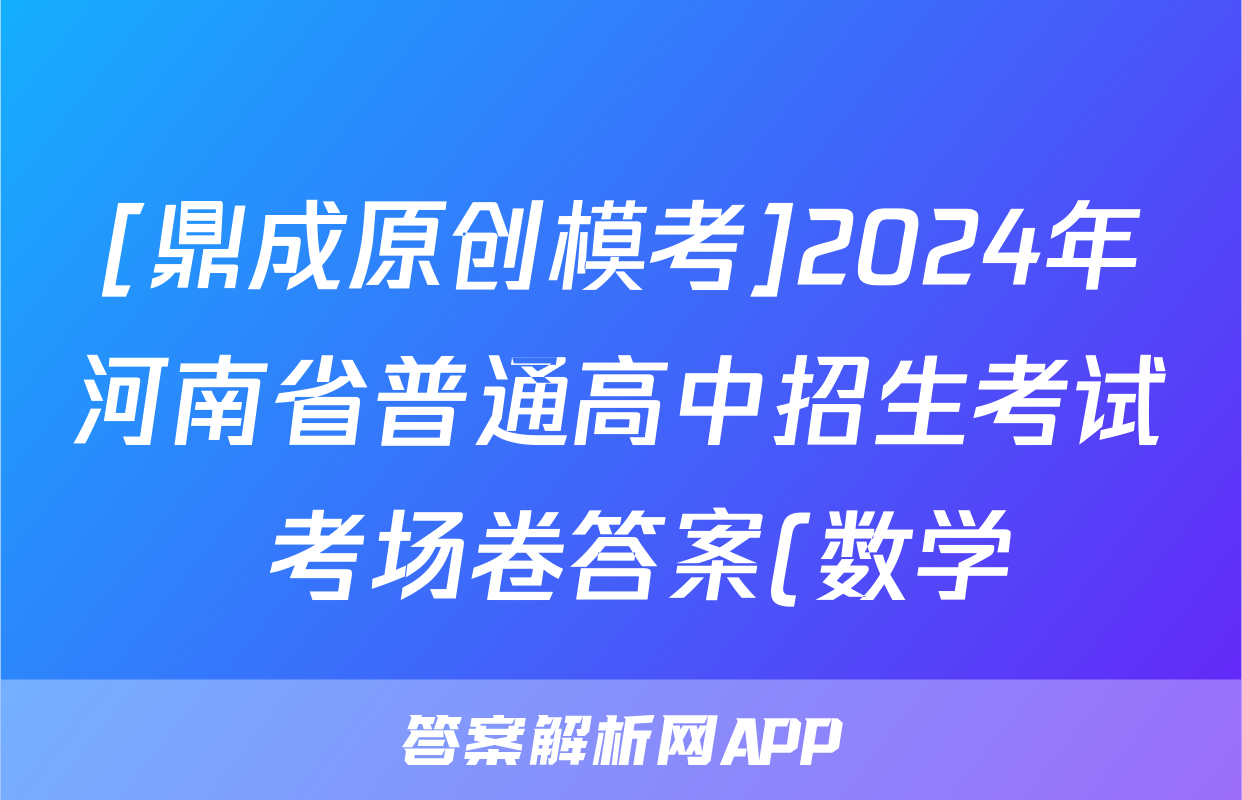 [鼎成原创模考]2024年河南省普通高中招生考试 考场卷答案(数学),目前2025-2026衡水金卷答案网已经汇总了[鼎成原创模考]2024年河南省普通高中招生考试 考场卷答案(数学)的各科答案和试卷,获取更多{{papers_name}}答案解析,请在关注本站。