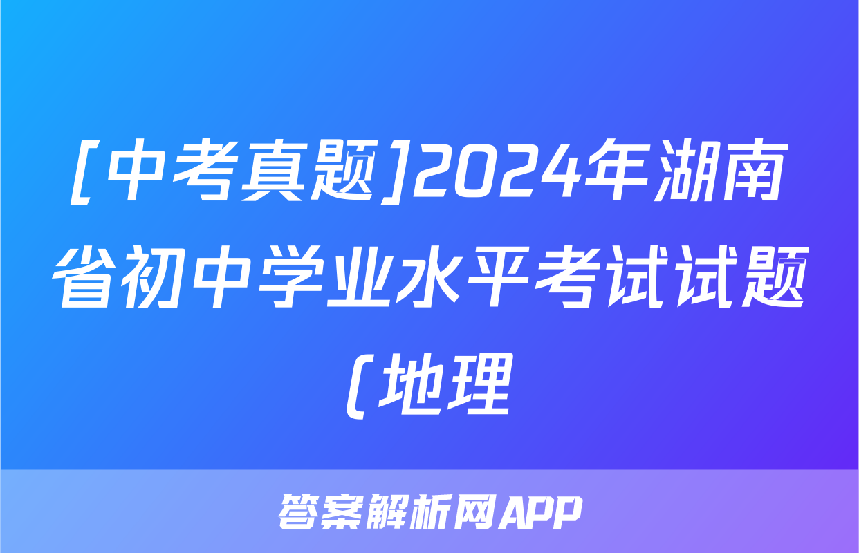 [中考真题]2024年湖南省初中学业水平考试试题(地理),目前2025-2026衡水金卷答案网已经汇总了[中考真题]2024年湖南省初中学业水平考试试题(地理)的各科答案和试卷,获取更多{{papers_name}}答案解析,请在关注本站。