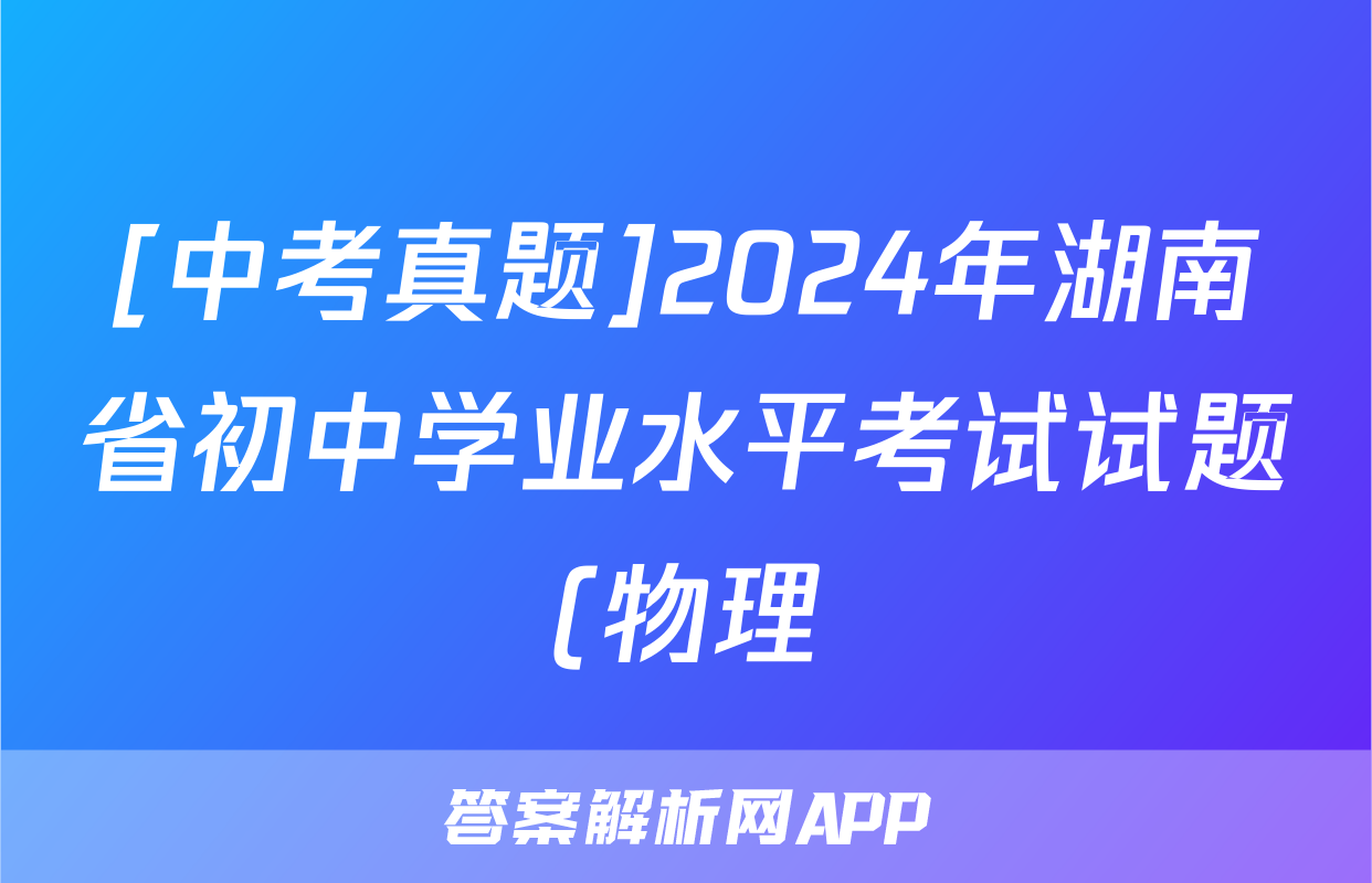 [中考真题]2024年湖南省初中学业水平考试试题(物理),目前2025-2026衡水金卷答案网已经汇总了[中考真题]2024年湖南省初中学业水平考试试题(物理)的各科答案和试卷,获取更多{{papers_name}}答案解析,请在关注本站。