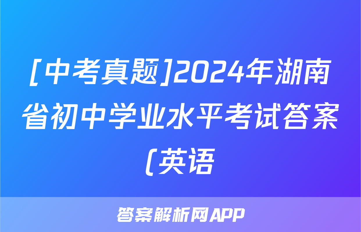 [中考真题]2024年湖南省初中学业水平考试答案(英语),目前2025-2026衡水金卷答案网已经汇总了[中考真题]2024年湖南省初中学业水平考试答案(英语)的各科答案和试卷,获取更多{{papers_name}}答案解析,请在关注本站。