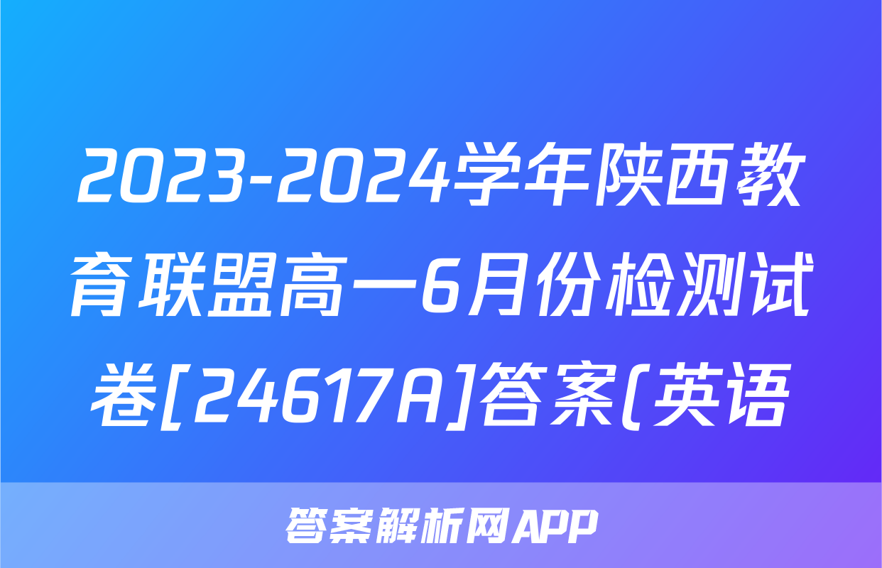 2023-2024学年陕西教育联盟高一6月份检测试卷[24617A]答案(英语),目前2025-2026衡水金卷答案网已经汇总了2023-2024学年陕西教育联盟高一6月份检测试卷[24617A]答案(英语)的各科答案和试卷,获取更多{{papers_name}}答案解析,请在关注本站。