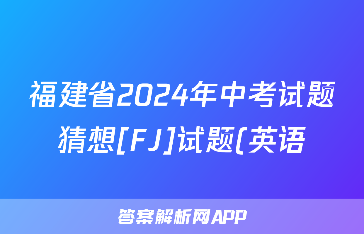 福建省2024年中考试题猜想[FJ]试题(英语),目前2025-2026衡水金卷答案网已经汇总了福建省2024年中考试题猜想[FJ]试题(英语)的各科答案和试卷,获取更多{{papers_name}}答案解析,请在关注本站。