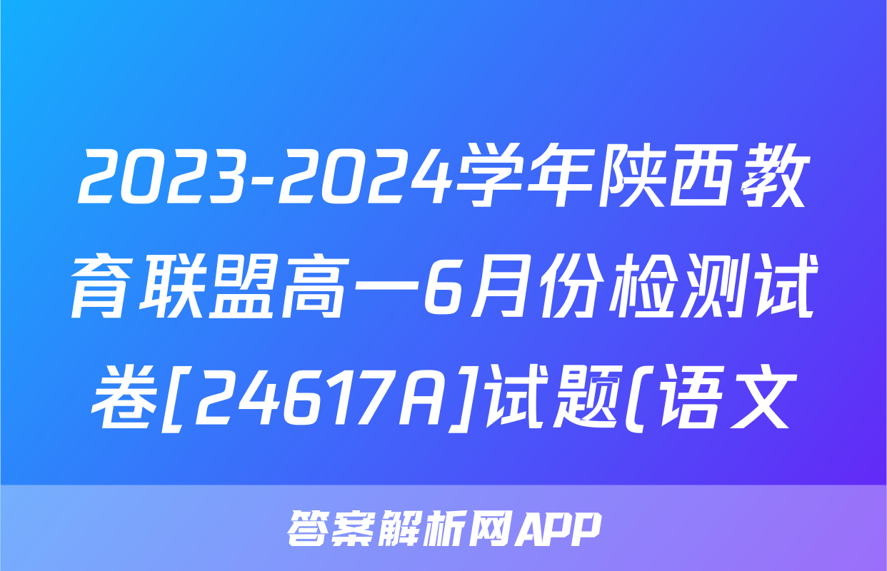 2023-2024学年陕西教育联盟高一6月份检测试卷[24617A]试题(语文),目前2025-2026衡水金卷答案网已经汇总了2023-2024学年陕西教育联盟高一6月份检测试卷[24617A]试题(语文)的各科答案和试卷,获取更多{{papers_name}}答案解析,请在关注本站。