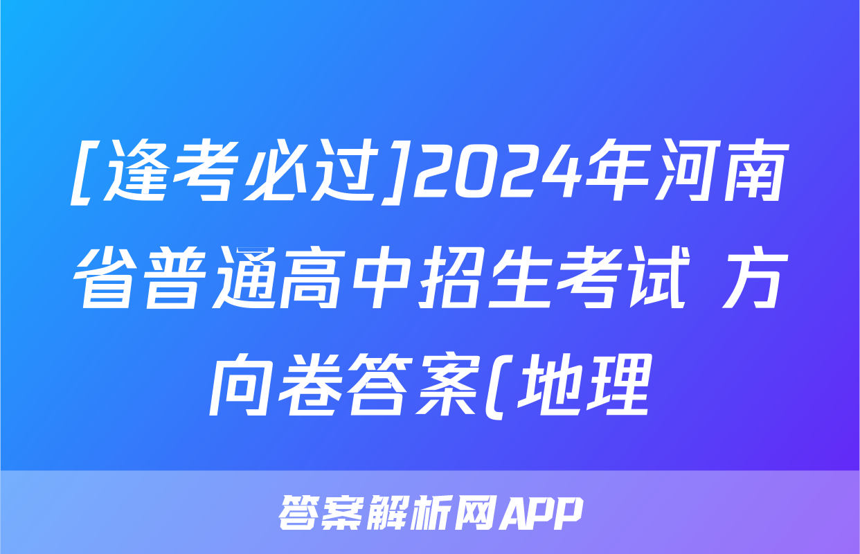 [逢考必过]2024年河南省普通高中招生考试 方向卷答案(地理),目前2025-2026衡水金卷答案网已经汇总了[逢考必过]2024年河南省普通高中招生考试 方向卷答案(地理)的各科答案和试卷,获取更多{{papers_name}}答案解析,请在关注本站。