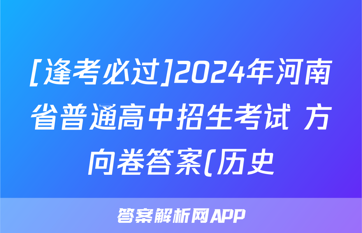 [逢考必过]2024年河南省普通高中招生考试 方向卷答案(历史),目前2025-2026衡水金卷答案网已经汇总了[逢考必过]2024年河南省普通高中招生考试 方向卷答案(历史)的各科答案和试卷,获取更多{{papers_name}}答案解析,请在关注本站。