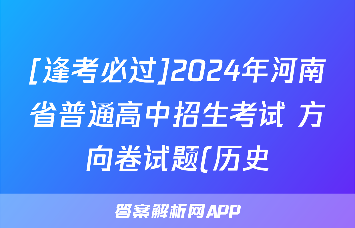 [逢考必过]2024年河南省普通高中招生考试 方向卷试题(历史),目前2025-2026衡水金卷答案网已经汇总了[逢考必过]2024年河南省普通高中招生考试 方向卷试题(历史)的各科答案和试卷,获取更多{{papers_name}}答案解析,请在关注本站。