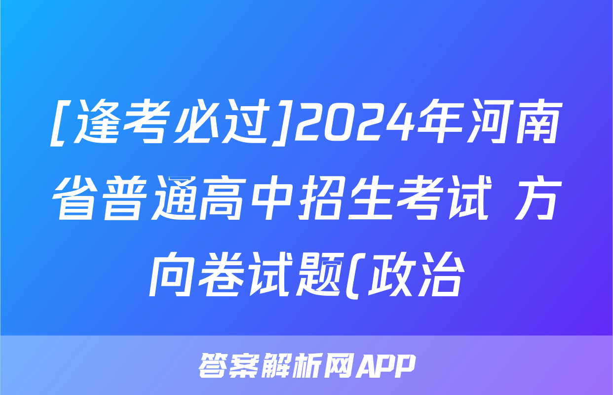 [逢考必过]2024年河南省普通高中招生考试 方向卷试题(政治),目前2025-2026衡水金卷答案网已经汇总了[逢考必过]2024年河南省普通高中招生考试 方向卷试题(政治)的各科答案和试卷,获取更多{{papers_name}}答案解析,请在关注本站。