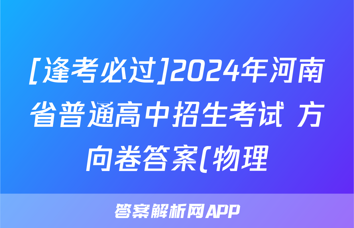 [逢考必过]2024年河南省普通高中招生考试 方向卷答案(物理),目前2025-2026衡水金卷答案网已经汇总了[逢考必过]2024年河南省普通高中招生考试 方向卷答案(物理)的各科答案和试卷,获取更多{{papers_name}}答案解析,请在关注本站。