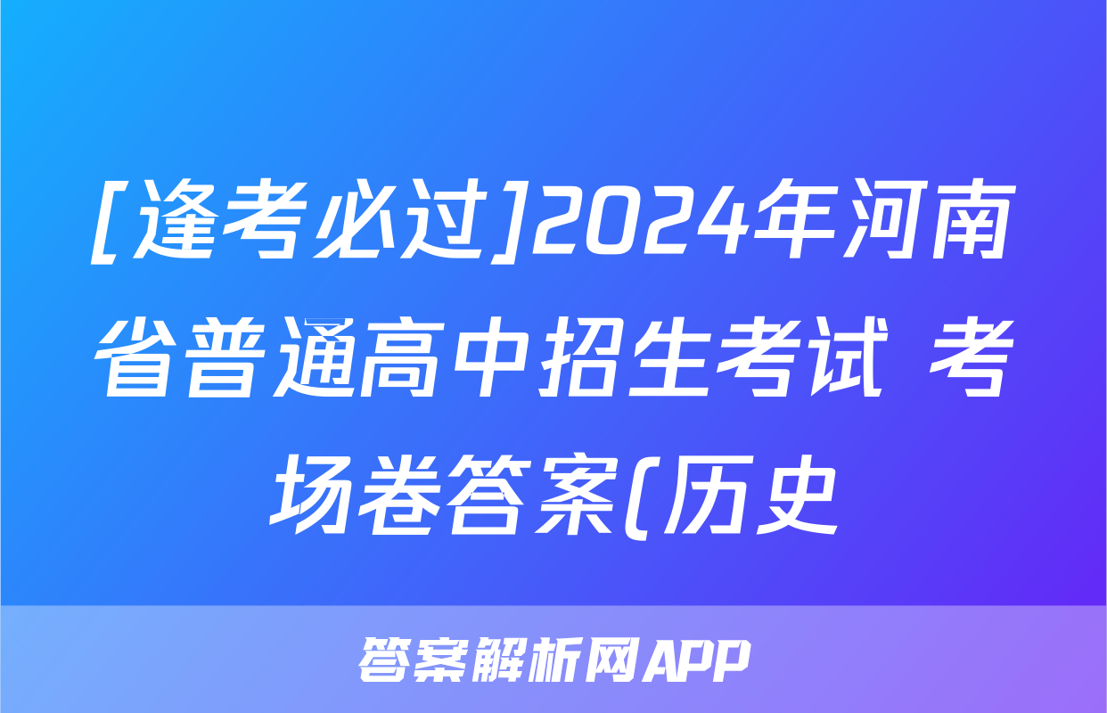[逢考必过]2024年河南省普通高中招生考试 考场卷答案(历史),目前2025-2026衡水金卷答案网已经汇总了[逢考必过]2024年河南省普通高中招生考试 考场卷答案(历史)的各科答案和试卷,获取更多{{papers_name}}答案解析,请在关注本站。