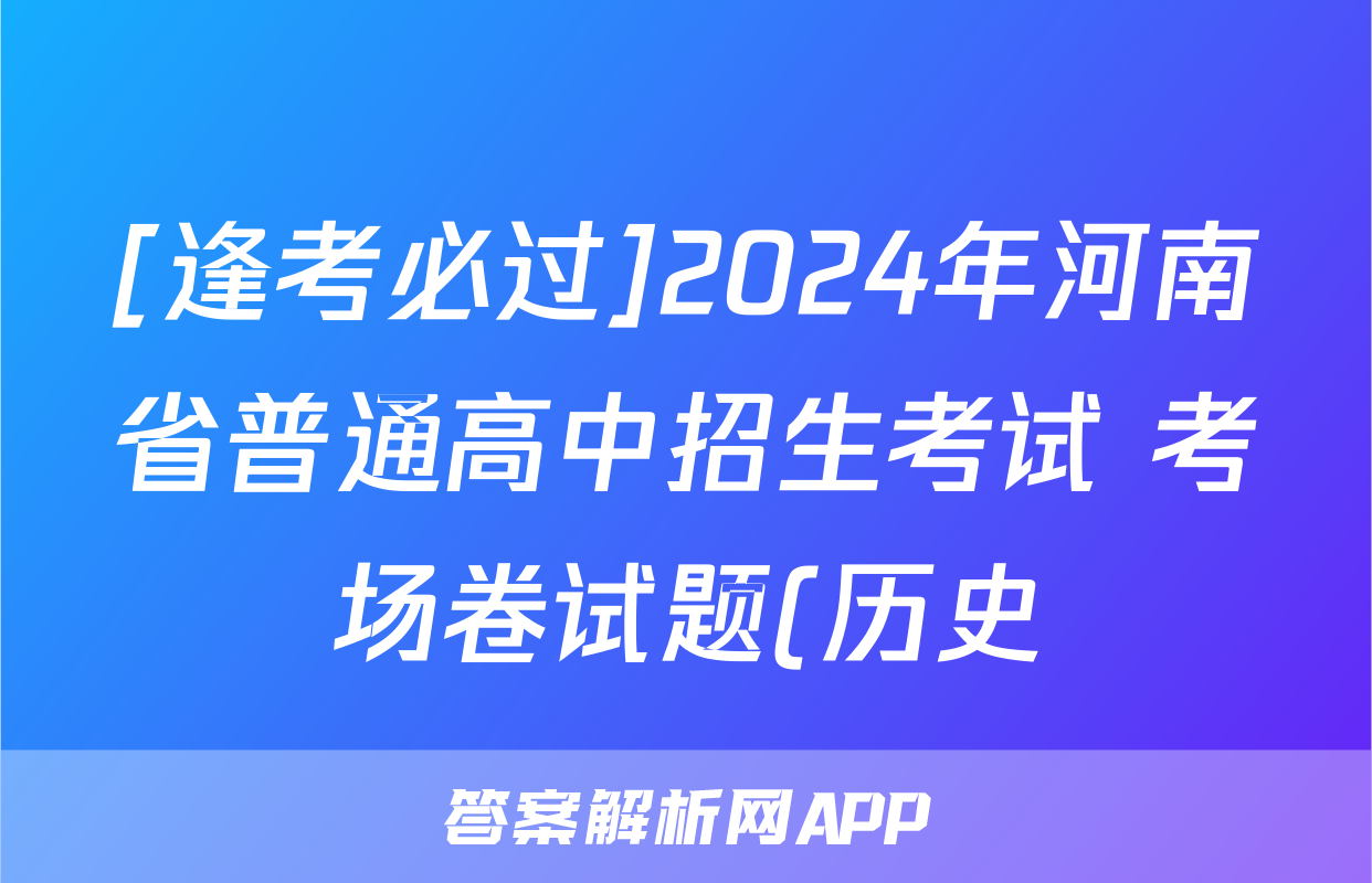 [逢考必过]2024年河南省普通高中招生考试 考场卷试题(历史),目前2025-2026衡水金卷答案网已经汇总了[逢考必过]2024年河南省普通高中招生考试 考场卷试题(历史)的各科答案和试卷,获取更多{{papers_name}}答案解析,请在关注本站。