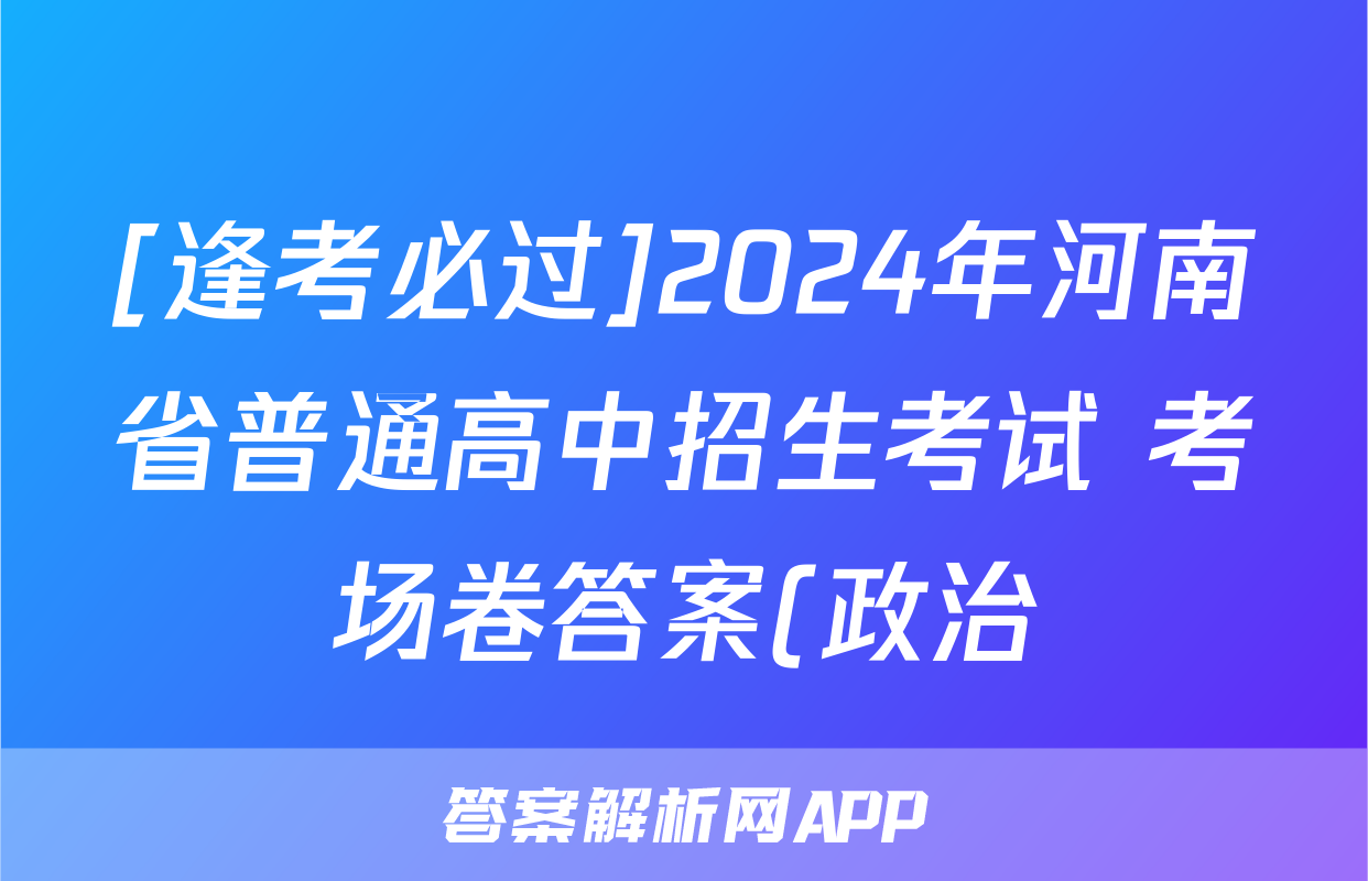 [逢考必过]2024年河南省普通高中招生考试 考场卷答案(政治),目前2025-2026衡水金卷答案网已经汇总了[逢考必过]2024年河南省普通高中招生考试 考场卷答案(政治)的各科答案和试卷,获取更多{{papers_name}}答案解析,请在关注本站。