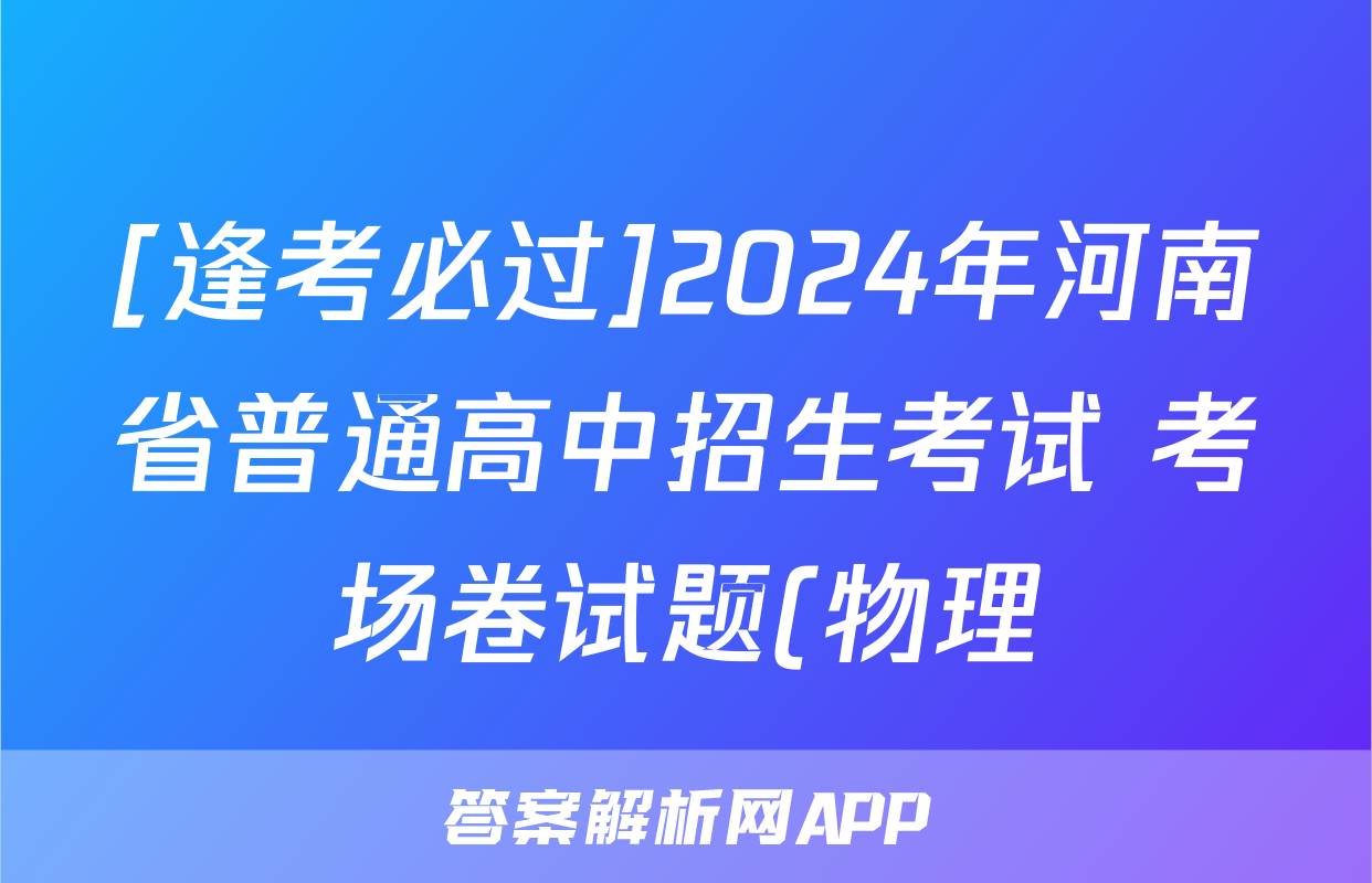 [逢考必过]2024年河南省普通高中招生考试 考场卷试题(物理),目前2025-2026衡水金卷答案网已经汇总了[逢考必过]2024年河南省普通高中招生考试 考场卷试题(物理)的各科答案和试卷,获取更多{{papers_name}}答案解析,请在关注本站。