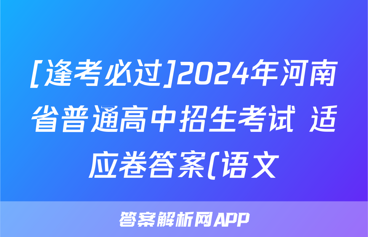 [逢考必过]2024年河南省普通高中招生考试 适应卷答案(语文),目前2025-2026衡水金卷答案网已经汇总了[逢考必过]2024年河南省普通高中招生考试 适应卷答案(语文)的各科答案和试卷,获取更多{{papers_name}}答案解析,请在关注本站。