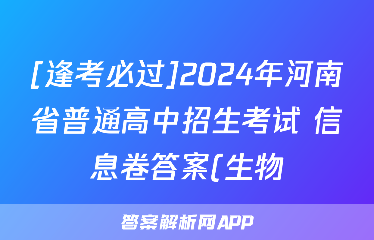[逢考必过]2024年河南省普通高中招生考试 信息卷答案(生物),目前2025-2026衡水金卷答案网已经汇总了[逢考必过]2024年河南省普通高中招生考试 信息卷答案(生物)的各科答案和试卷,获取更多{{papers_name}}答案解析,请在关注本站。