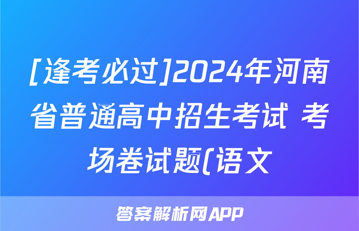 [逢考必过]2024年河南省普通高中招生考试 考场卷试题(语文),目前2025-2026衡水金卷答案网已经汇总了[逢考必过]2024年河南省普通高中招生考试 考场卷试题(语文)的各科答案和试卷,获取更多{{papers_name}}答案解析,请在关注本站。