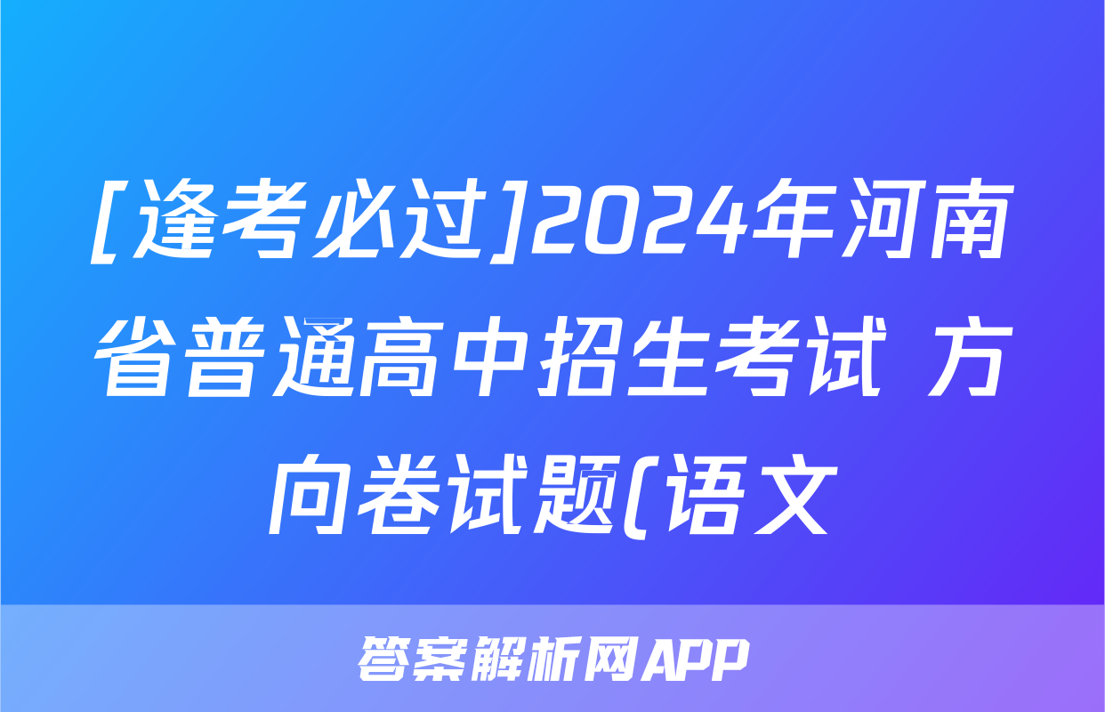 [逢考必过]2024年河南省普通高中招生考试 方向卷试题(语文),目前2025-2026衡水金卷答案网已经汇总了[逢考必过]2024年河南省普通高中招生考试 方向卷试题(语文)的各科答案和试卷,获取更多{{papers_name}}答案解析,请在关注本站。